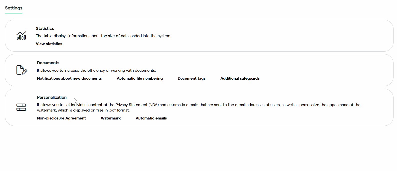 Important: Every user in the VDR has email notifications enabled by default as part of their individual account settings. However, this function will only work if the VDR admin sets it within their permissions.