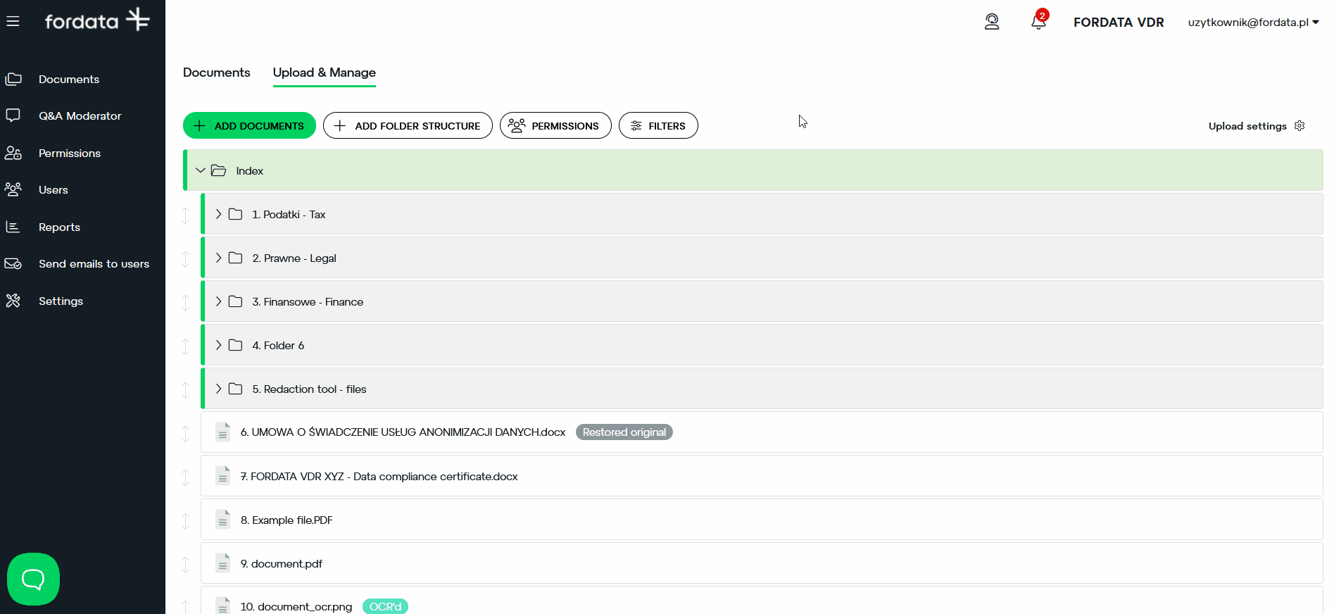 - Navigate to the Documents tab and within it, go to the Upload & Manage tab.