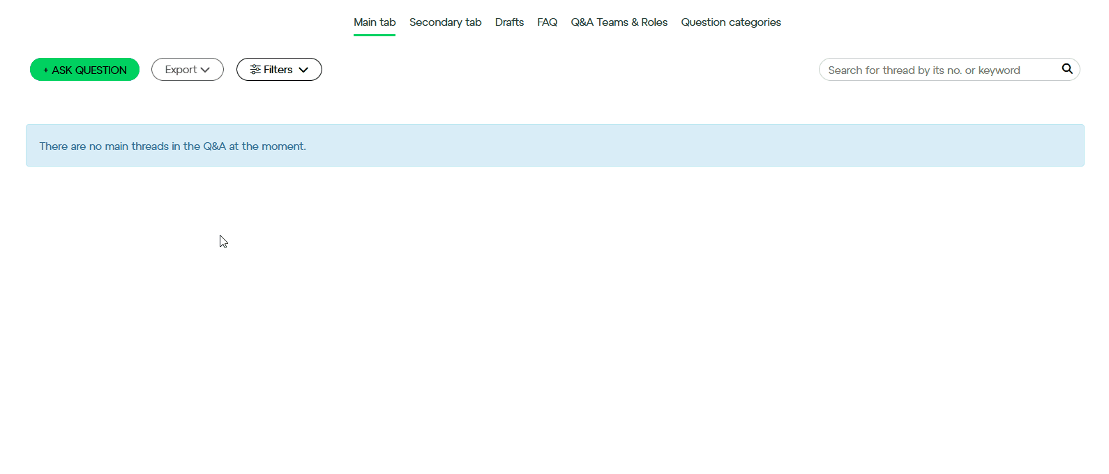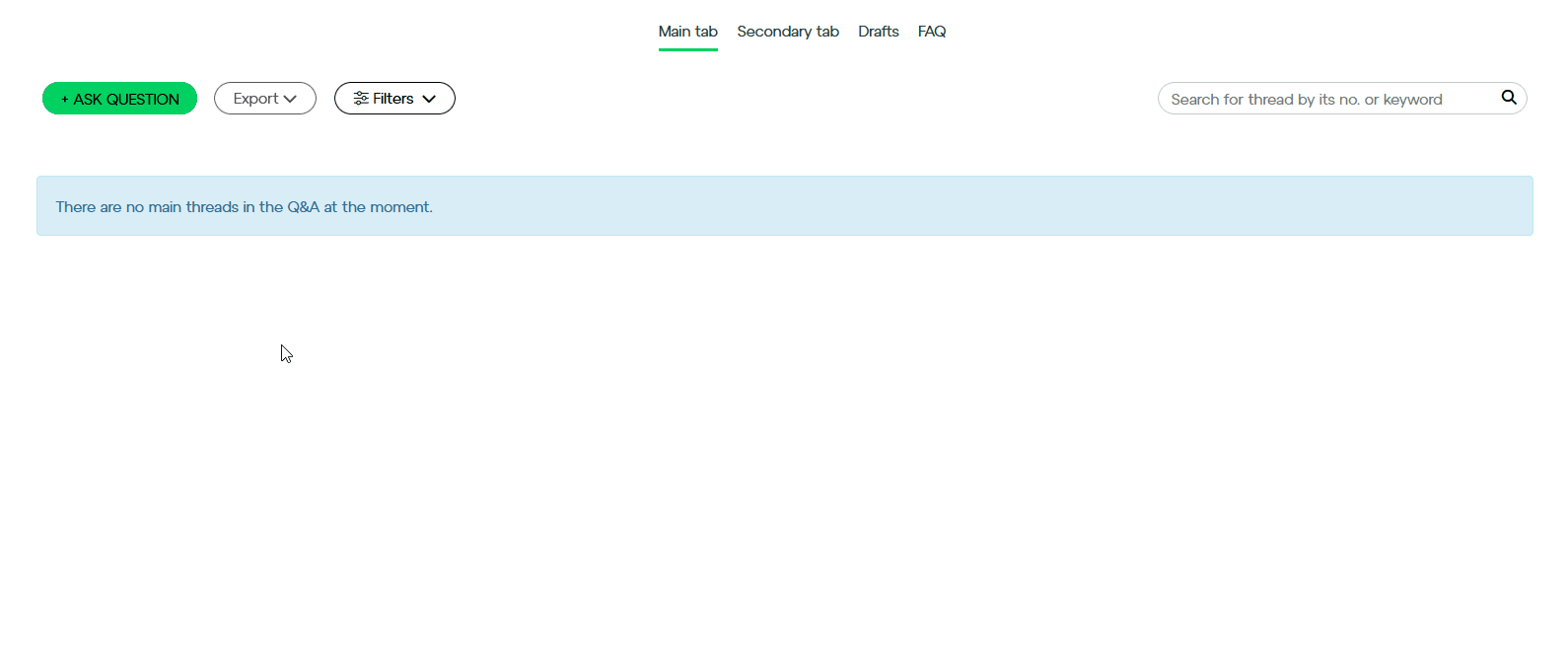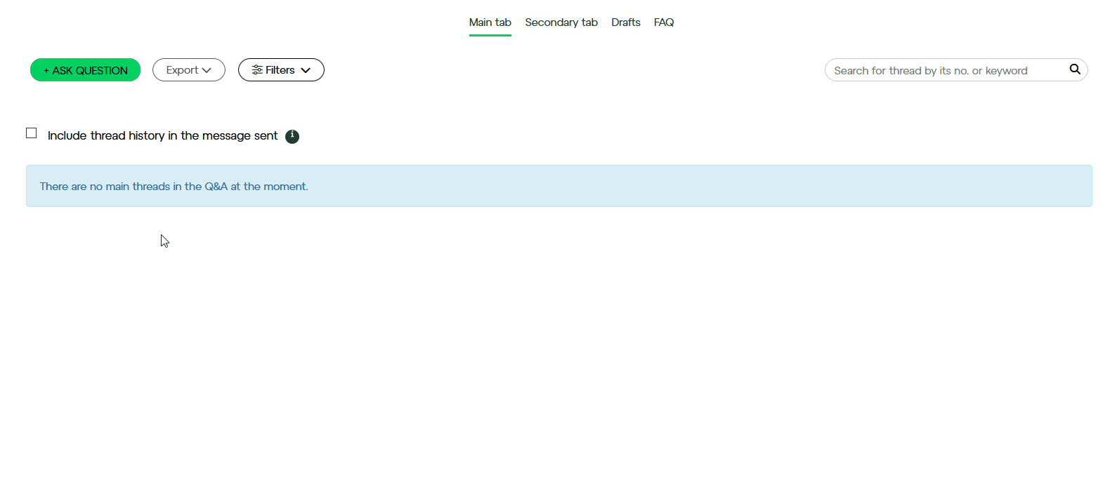- Within the Open Threads tab, click on the button ASK A QUESTION.