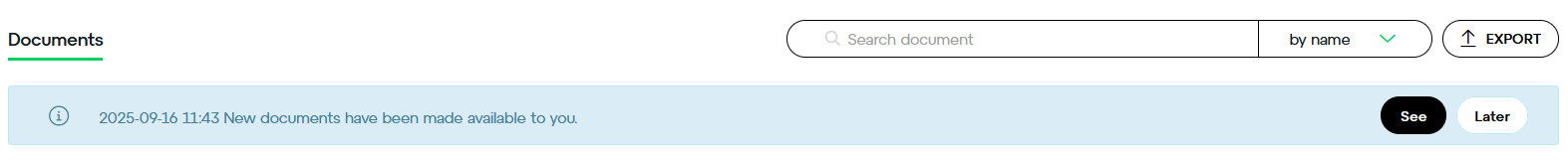 - Navigate to the Documents tab, where you'll notice a blue banner signifying new documents awaiting your review. Click on See to access the complete list (fig. 2).